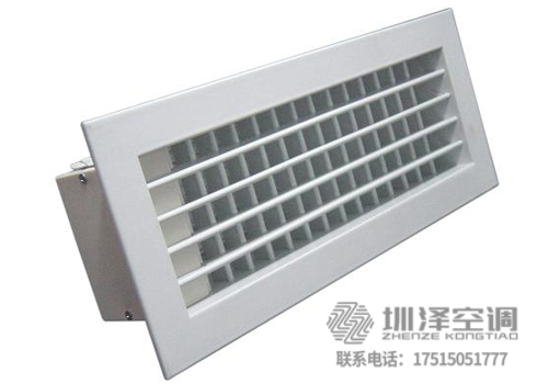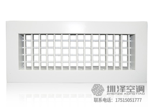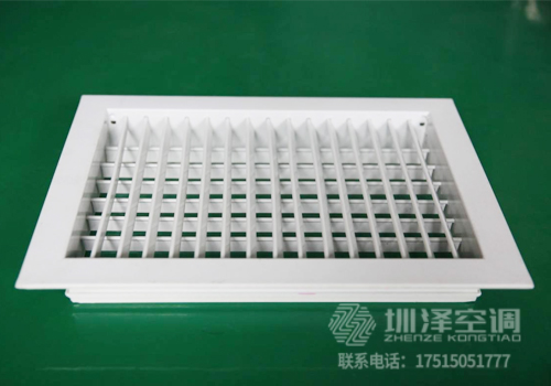 雙層百葉風(fēng)口由雙層葉片組成,前面一層葉片是可調(diào)的,后面一層葉片是固定的,根據(jù)需要可配置對(duì)開式多葉風(fēng)量調(diào)節(jié)閥,用來(lái)調(diào)節(jié)風(fēng)口風(fēng)量。凡前面葉片為豎向布置、后面葉片為橫向布置的稱為VH式。通過(guò)改變豎葉片的安裝角度,可調(diào)整氣流的擴(kuò)散角。例如,設(shè)在賓館客房小過(guò)道內(nèi)的臥式暗裝風(fēng)機(jī)盤管機(jī)組的出風(fēng)口,通常是采用VH式雙層百葉風(fēng)口的。